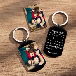 Двустранен ключодържател със снимка и календар - Сватбен ден