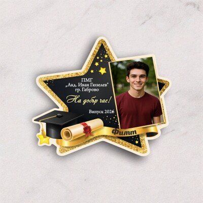 3D Магнит за абитуриент с негова снимка - Честито завършване! Дипломиране!