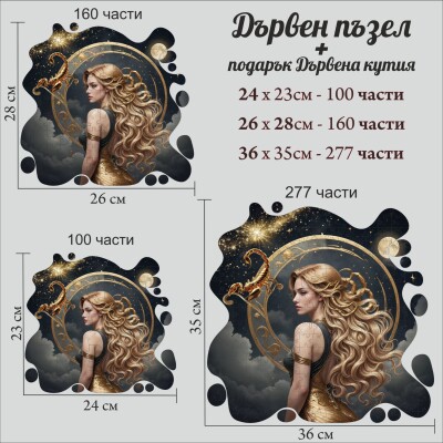 Дървен пъзел "Зодия Дева" – с фигурни елементи