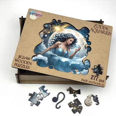 Дървен пъзел "Зодия Водолей" – с фигурни елементи