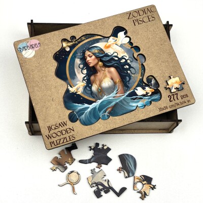 Дървен пъзел "Зодия Риби " – с фигурни елементи