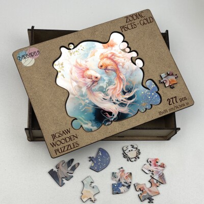 Дървен пъзел "Зодия Риби " Голд – с фигурни елементи
