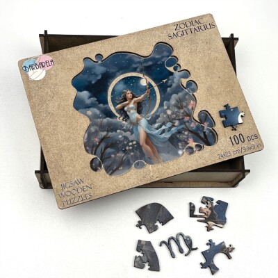 Дървен пъзел "Зодия Стрелец" – с фигурни елементи