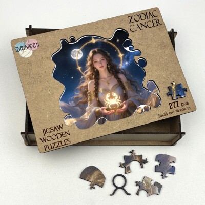 Дървен пъзел "Зодия Рак" – с фигурни елементи