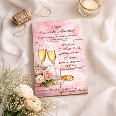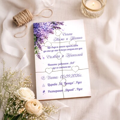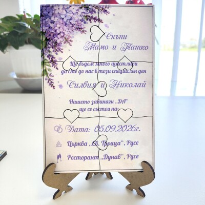 Дървена покана тип пъзел за сватба 012