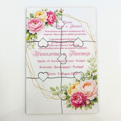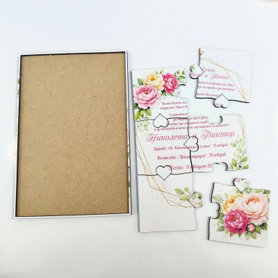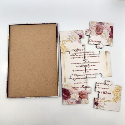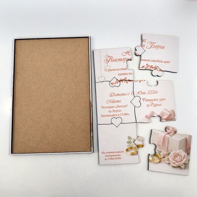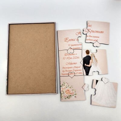 Дървена покана тип пъзел за сватба 003