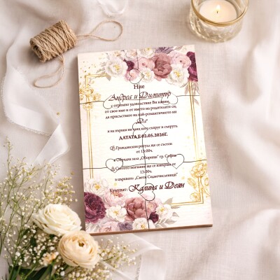 Дървена покана тип пъзел за сватба 002