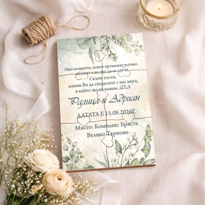 Дървена покана тип пъзел за сватба 013