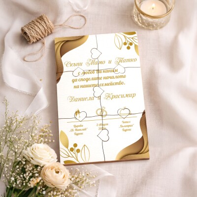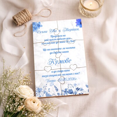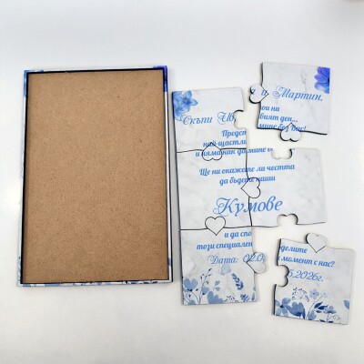 Дървена покана тип пъзел за кумове 011