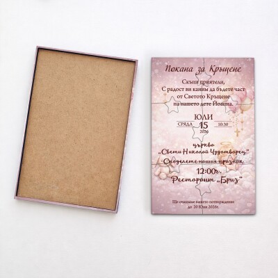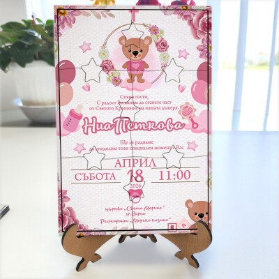 Дървена покана тип пъзел за кръщене 018