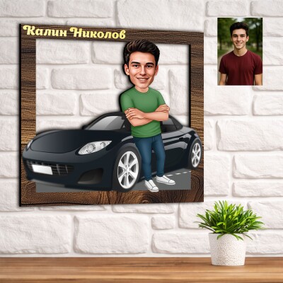 3Д карикатура мъж с автомобил