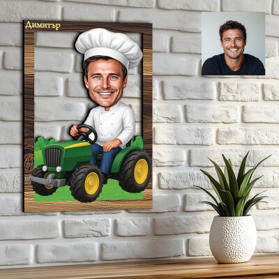 3Д карикатура на мъж - шеф готвач на трактор