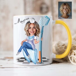 Чаша с карикатура на жена - зъболекар с четка за зъби