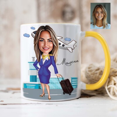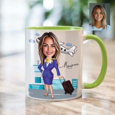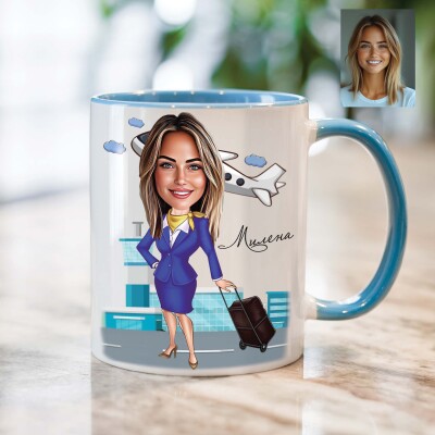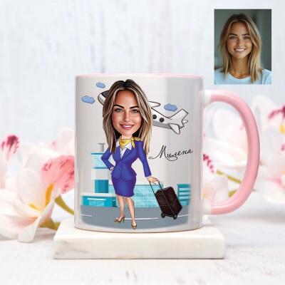 Чаша с карикатура на жена стюардеса - Живот в небето