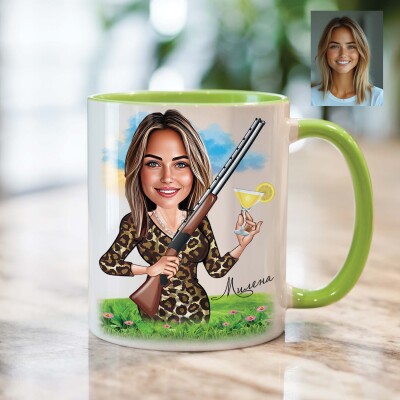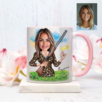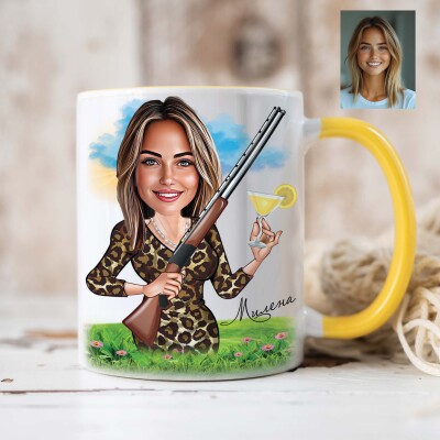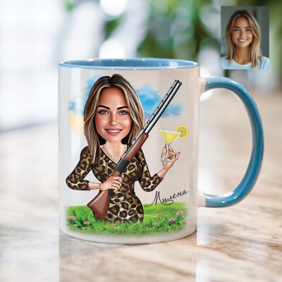 Чаша с карикатура на жена с коктейл и пушка - На лов
