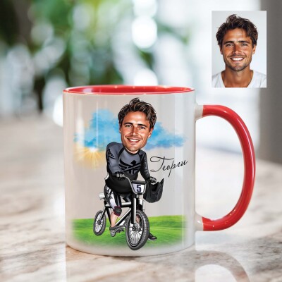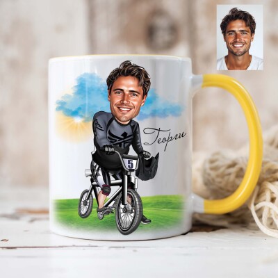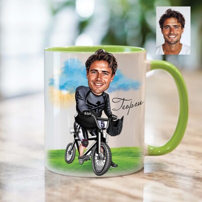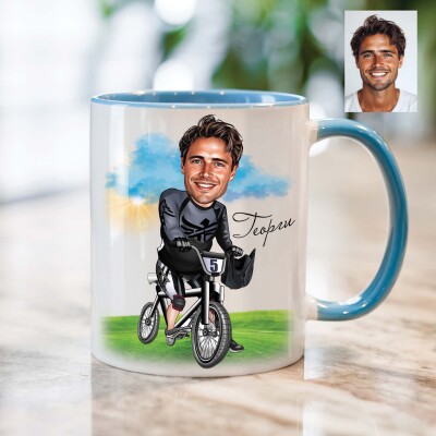Чаша с карикатура на мъж колоездач