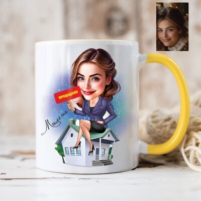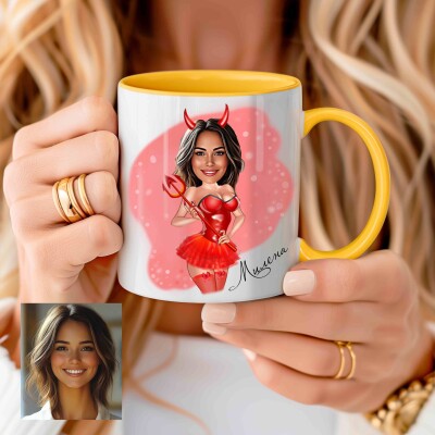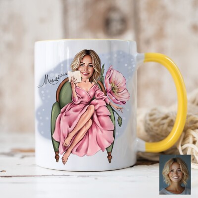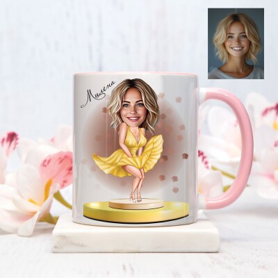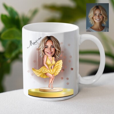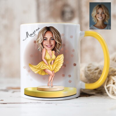 Чаша с карикатура на жена Мерилин - Малка жълта рокля