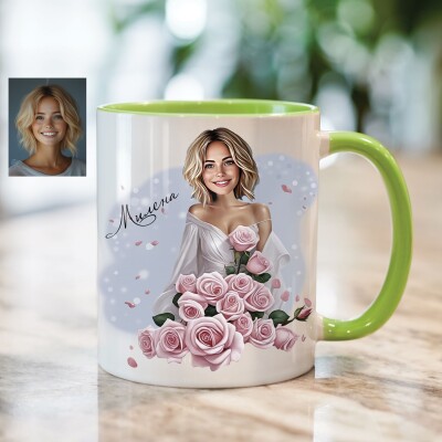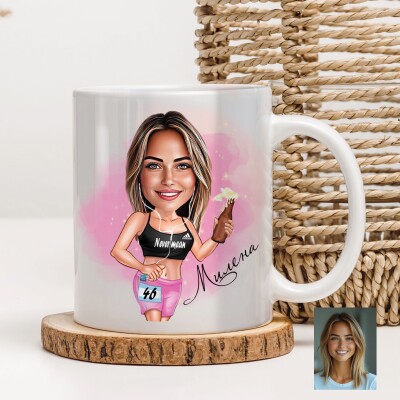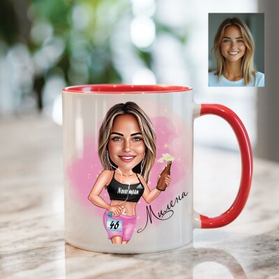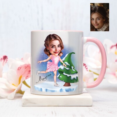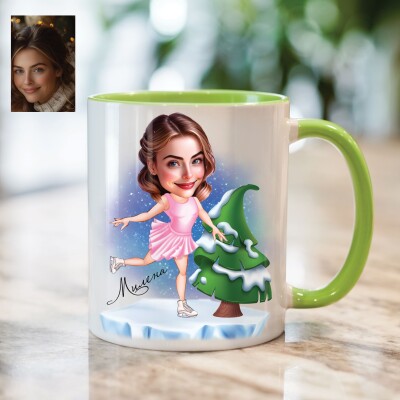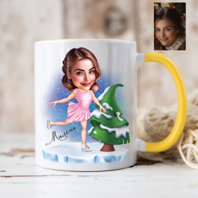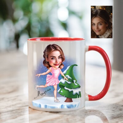 Чаша с карикатура на жена с кънки - Зимна приказка