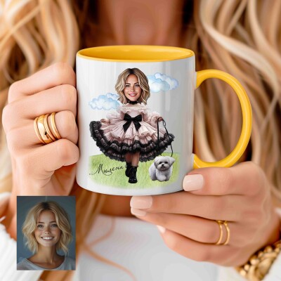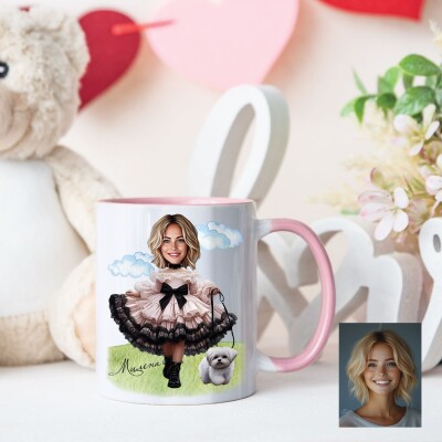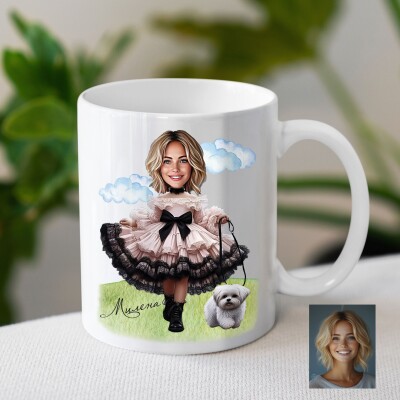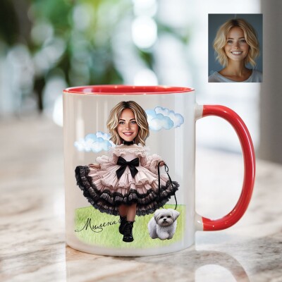 Чаша с карикатура на жена с кученце - Кокетна разходка