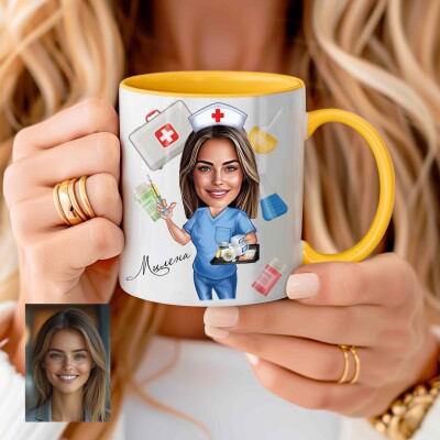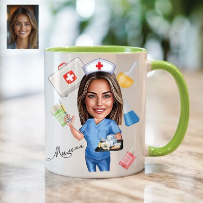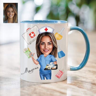 Чаша с карикатура на жена лекарка - медицинска сестра