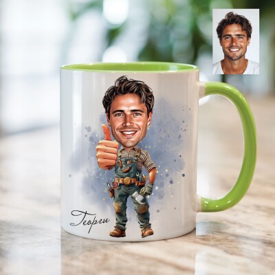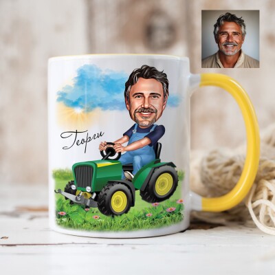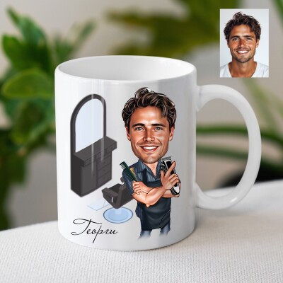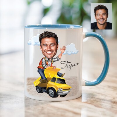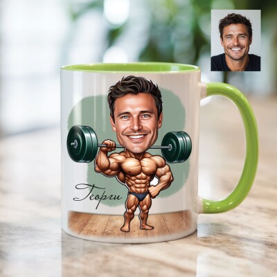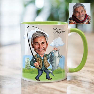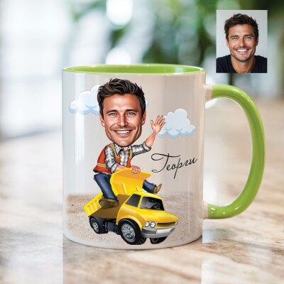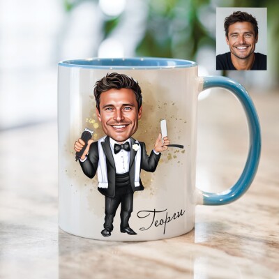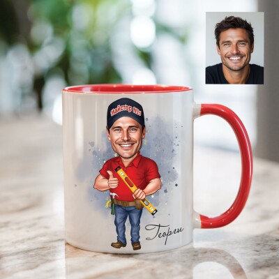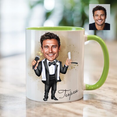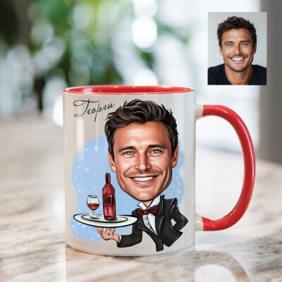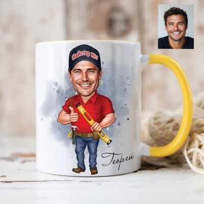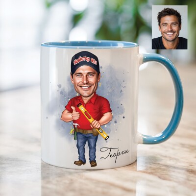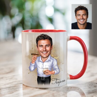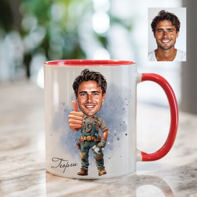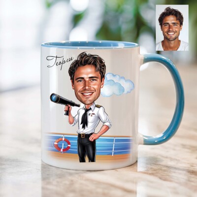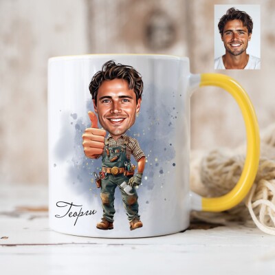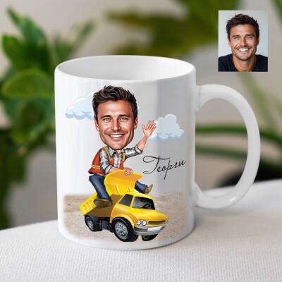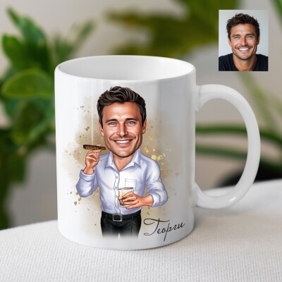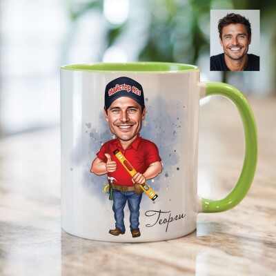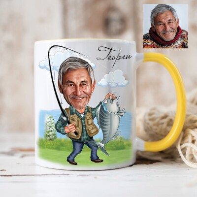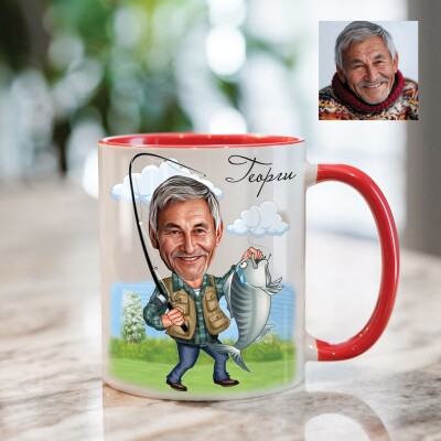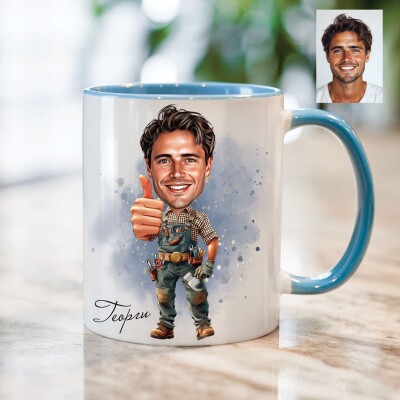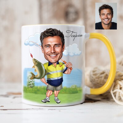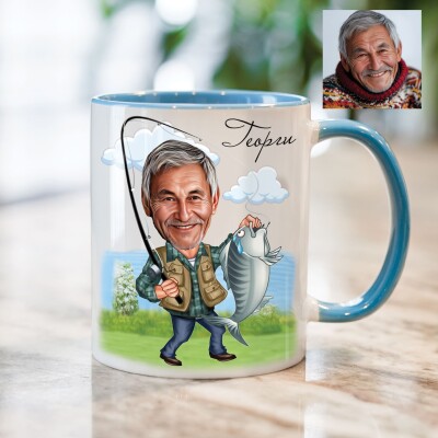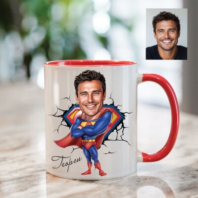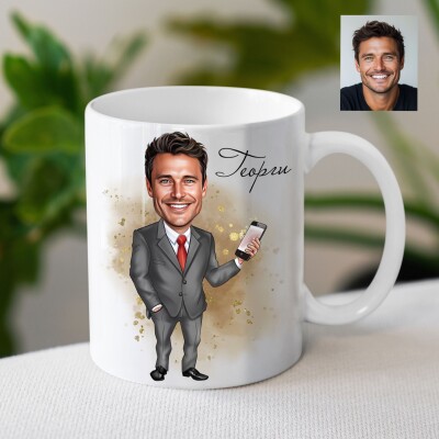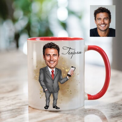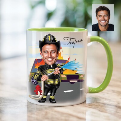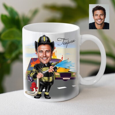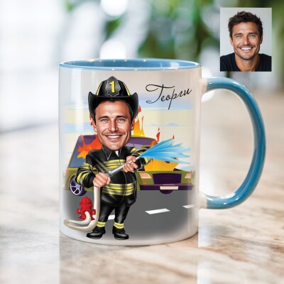 Чаша с карикатура на мъж - пожарникар с маркуч