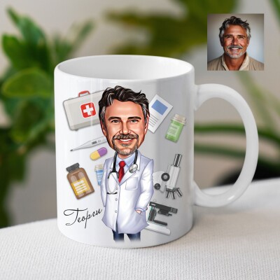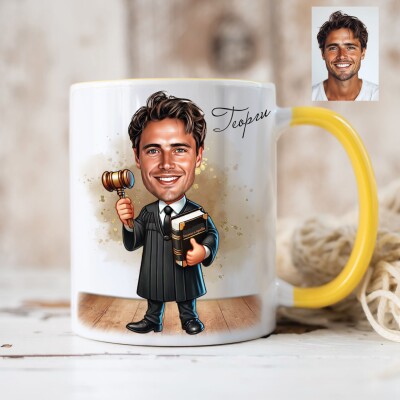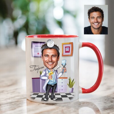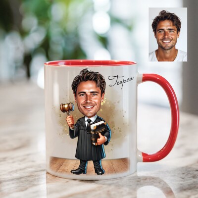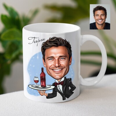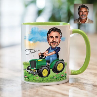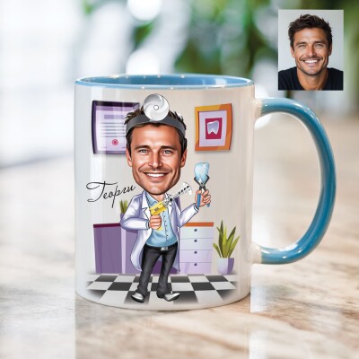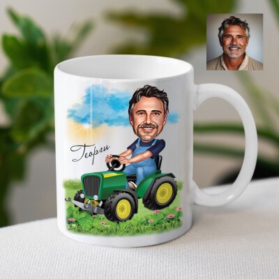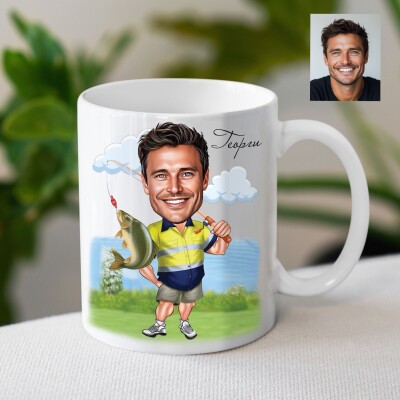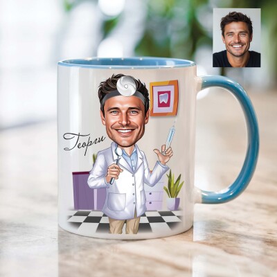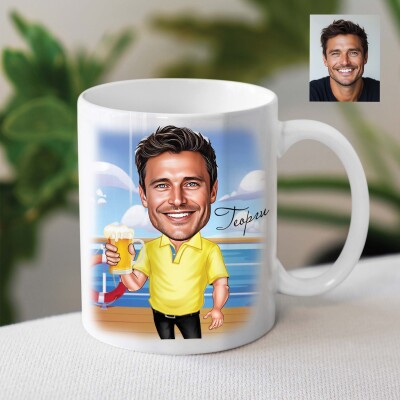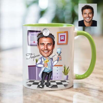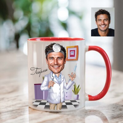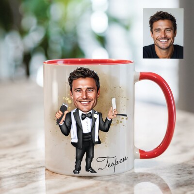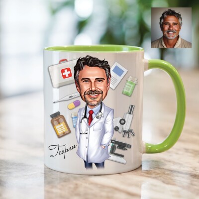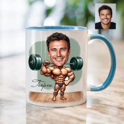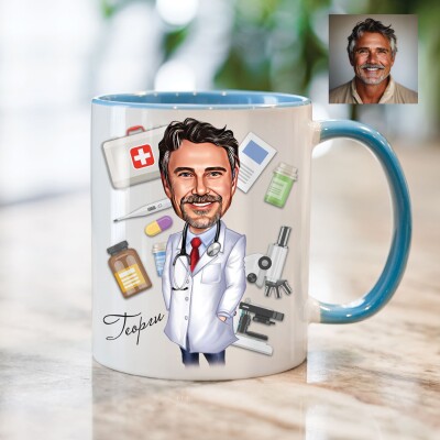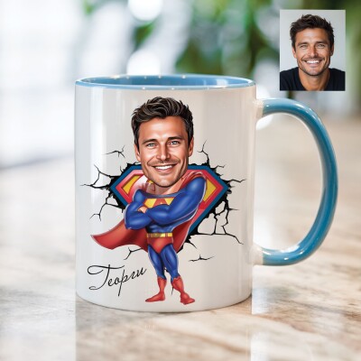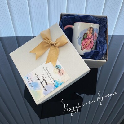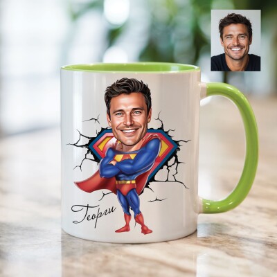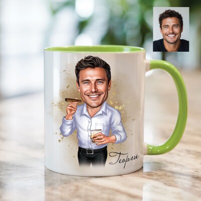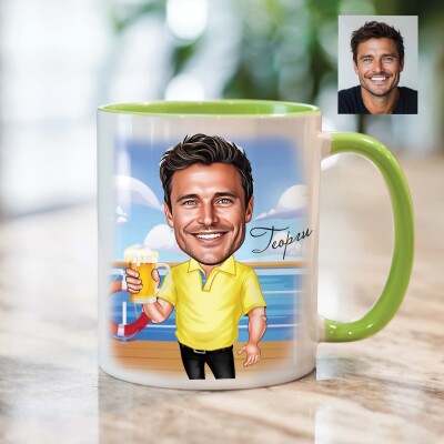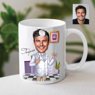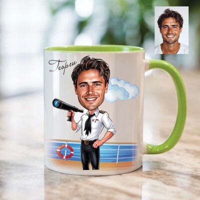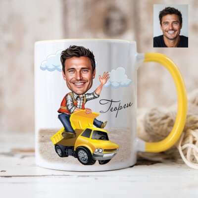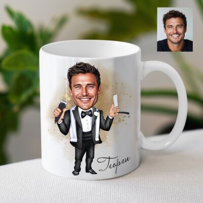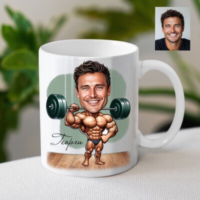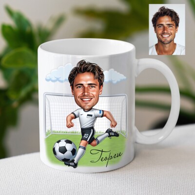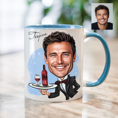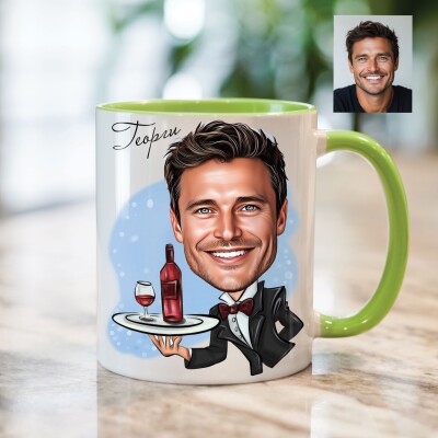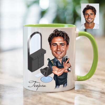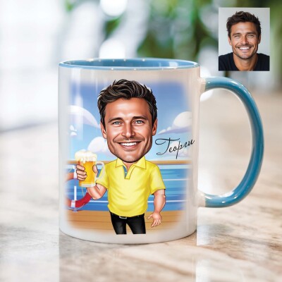 Чаша с карикатура на мъж - пожарникар с маркуч