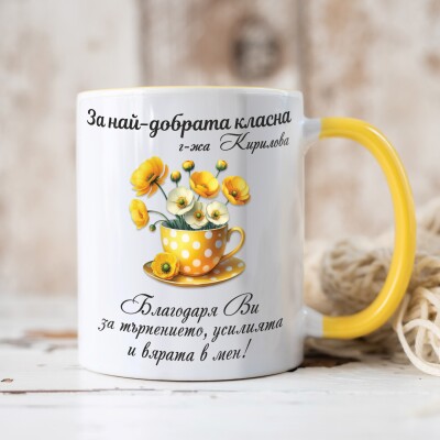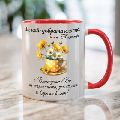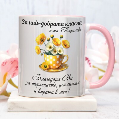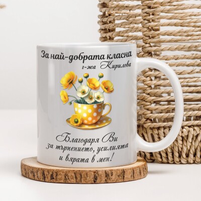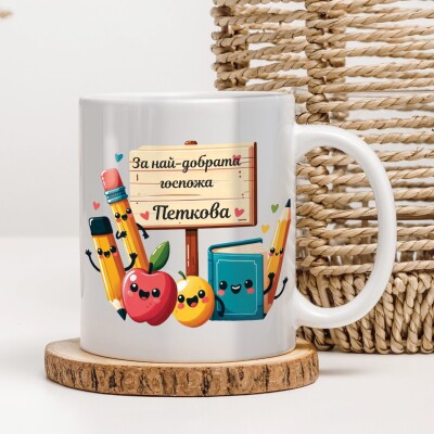 Персонализирана чаша за учител - За най-добрата госпожа ..