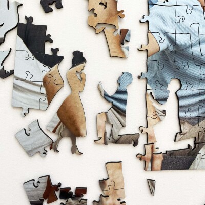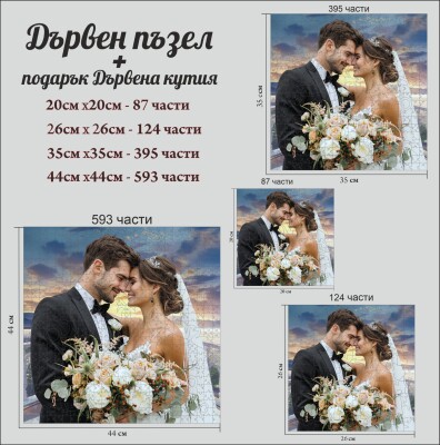 Дървен пъзел по снимка с фигурни части + подарък кутия