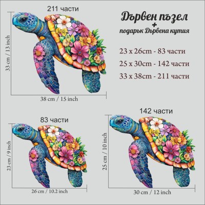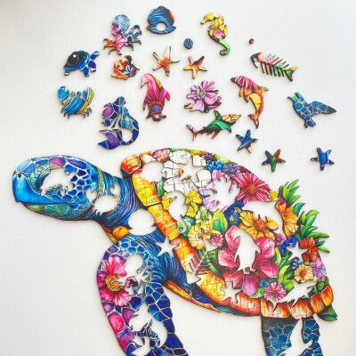 Дървен Арт пъзел "Морска костенурка" – с фигурни елементи