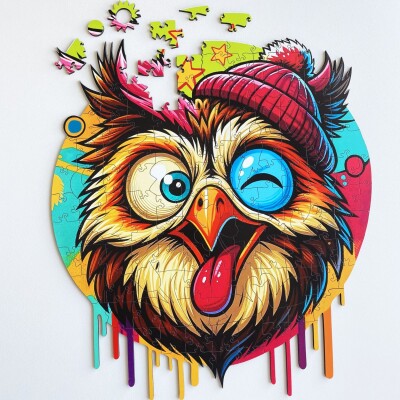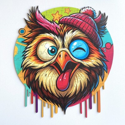Дървен Арт пъзел "Щастлив Бухал" – с фигурни елементи