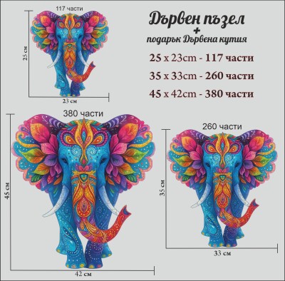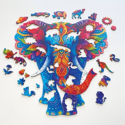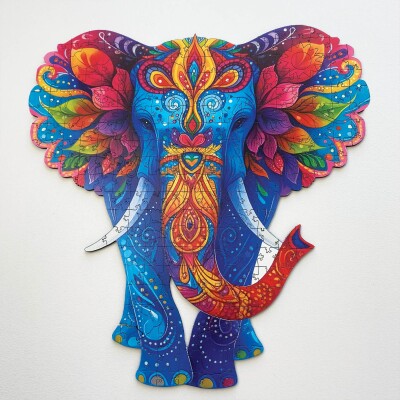 Дървен Арт пъзел "Слон Мандала" – с фигурни елементи