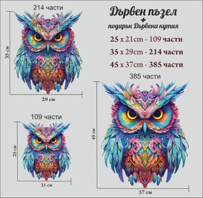 Дървен Арт пъзел "Тайнствена Сова" – с фигурни елементи