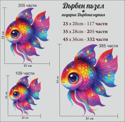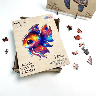 Дървен Арт пъзел "Вълшебна риба" – с фигурни елементи