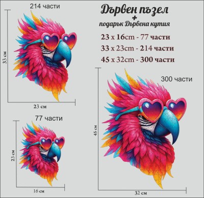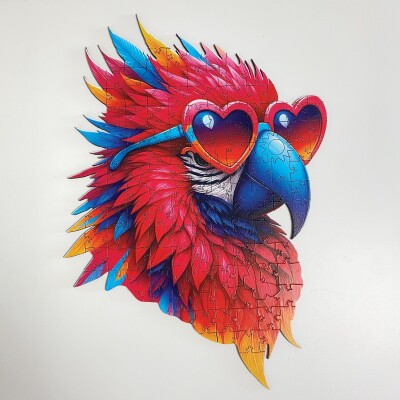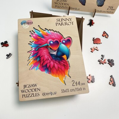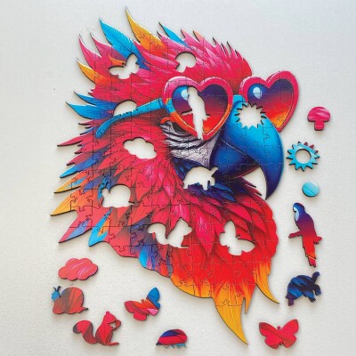 Дървен Арт пъзел "Слънчев папагал" – с фигурни елементи