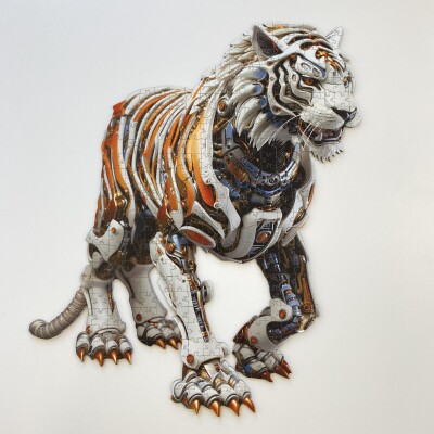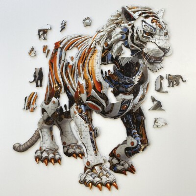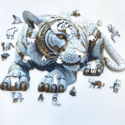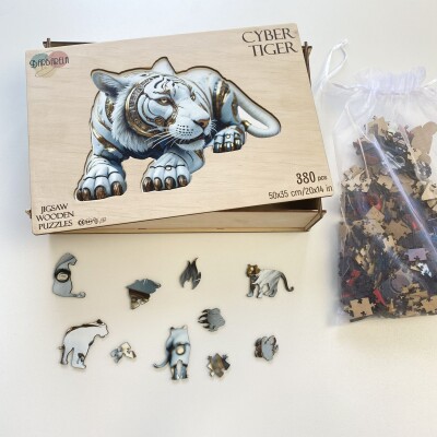 Дървен Арт пъзел "Кибер тигър" – с фигурни елементи