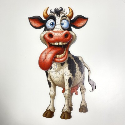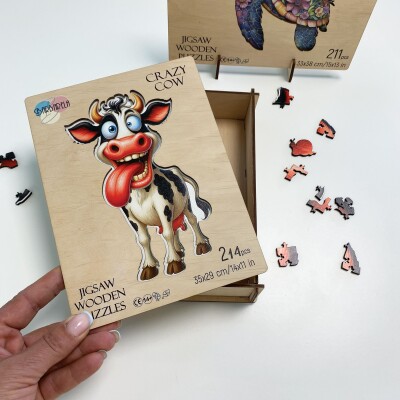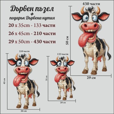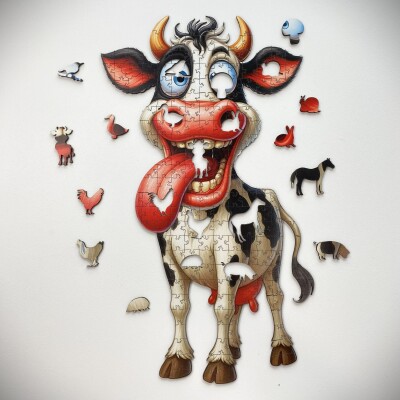 Дървен Арт пъзел "Луда крава" – с фигурни елементи