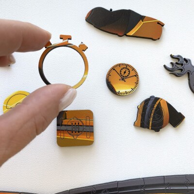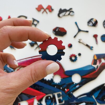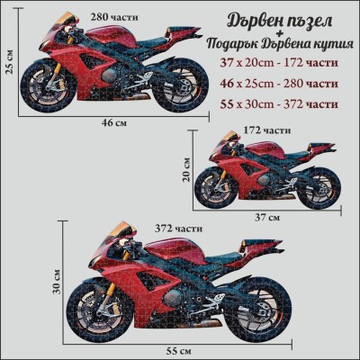 Дървен пъзел "Червен пистов мотор" – с фигурни елементи
