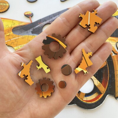 Дървен пъзел "Жълта спортна кола" – с фигурни елементи