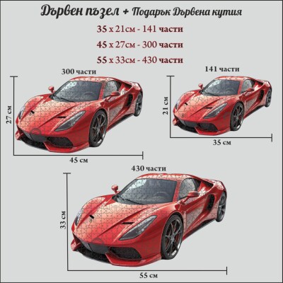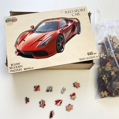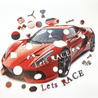 Дървен пъзел "Червена спортна кола" – с фигурни елементи