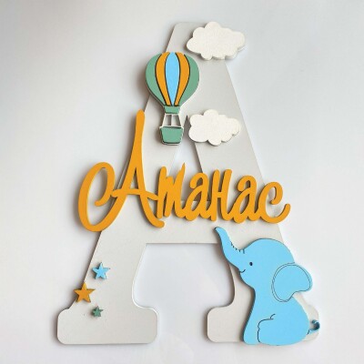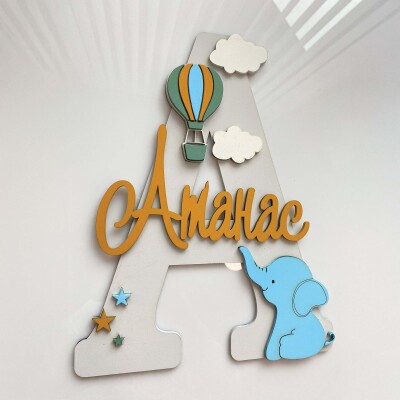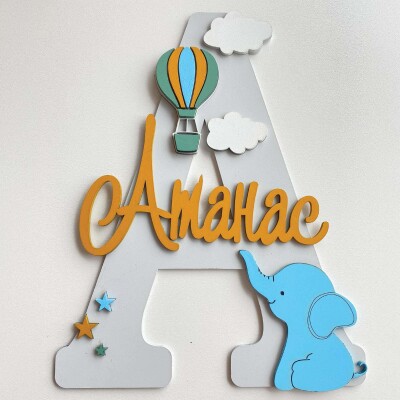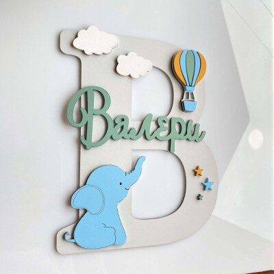 3D Буква с името на вашето дете - Декорация за врата или стая на момче