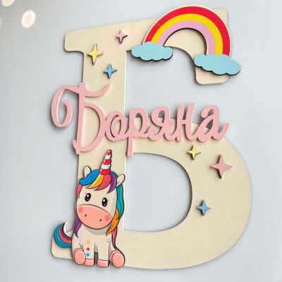 3D Буква с името на вашето дете - Декорация за врата или стая на момиче