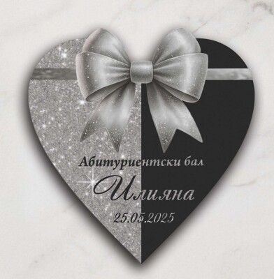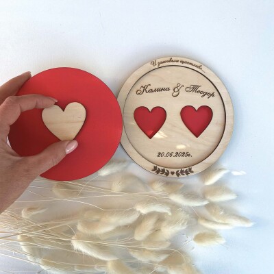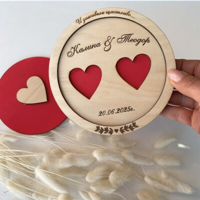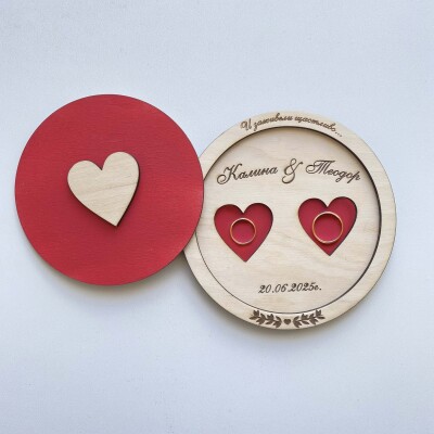 Дървена кутия за сватбени пръстени с персонализация - Сърце
