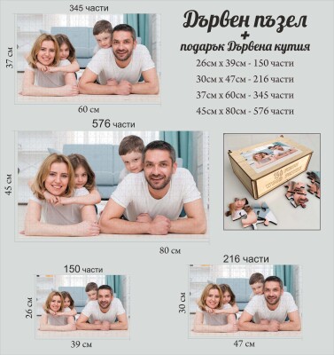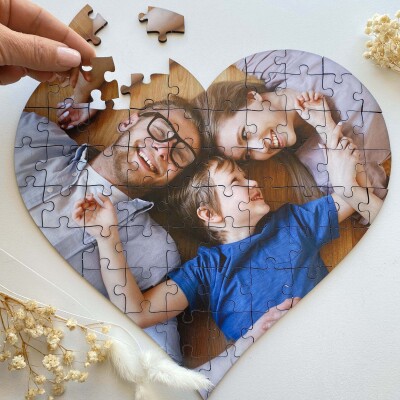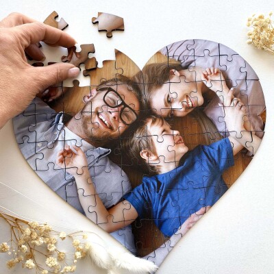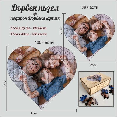 Дървен пъзел Сърце по Ваша снимка - класическа форма на частите