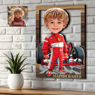 3Д карикатура на момче с болид - Формула