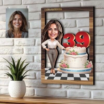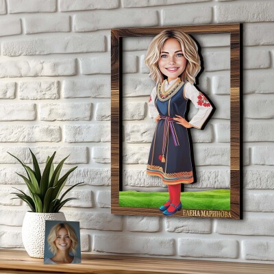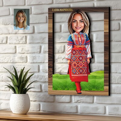 3Д карикатура на жена с народна носия - Честит рожден ден, честит юбилей!