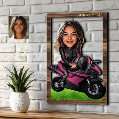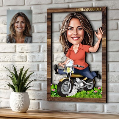 3Д карикатура Дама на мотор