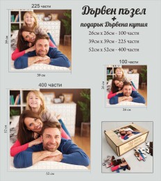 Дървен пъзел по снимка с фигурни части + подарък кутия