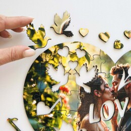 Дървен пъзел Сърце по Ваша снимка - класическа форма на частите