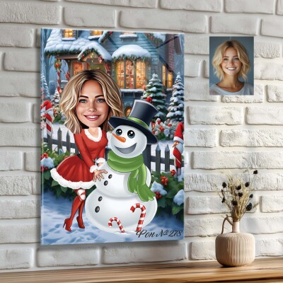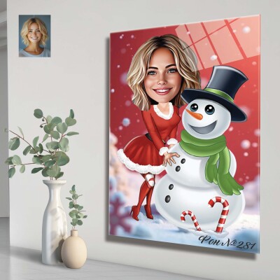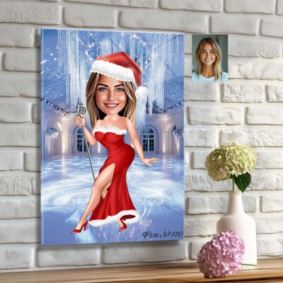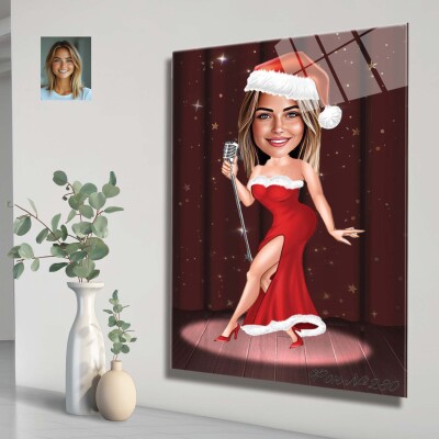 Стъклена карикатура на жена с микрофон - Коледна певица