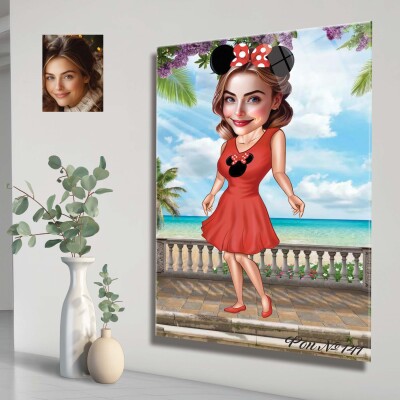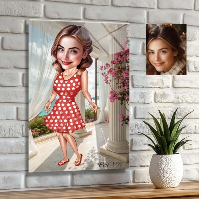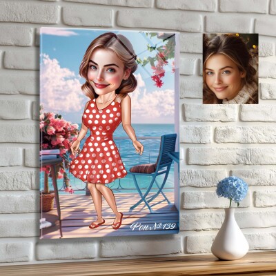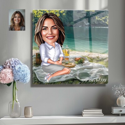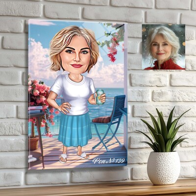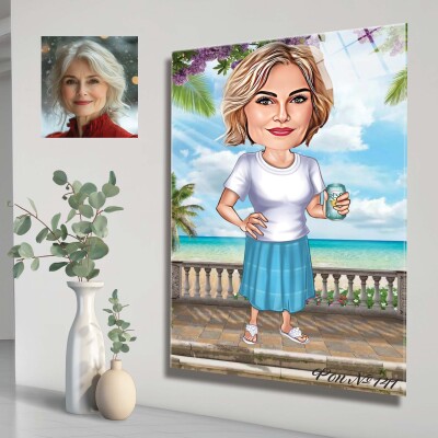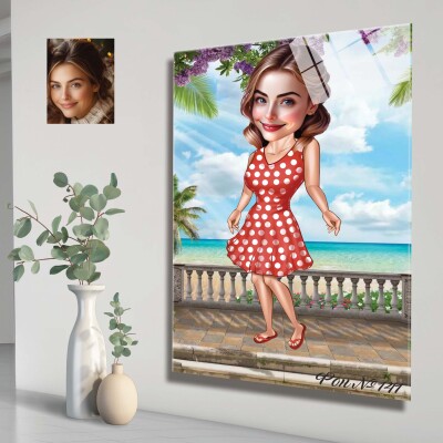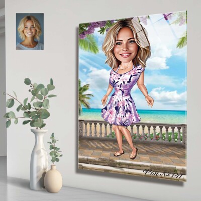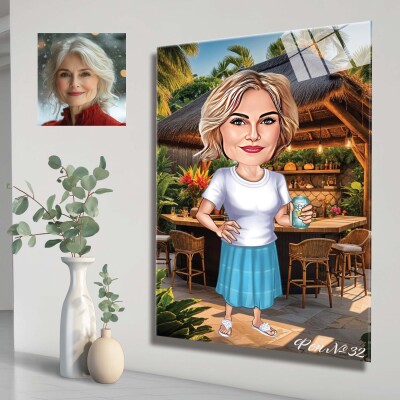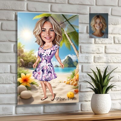 Стъклена карикатура на жена с коктейл - Плажни забавления
